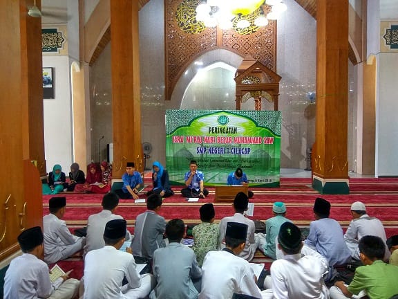 Acara di awali dengan membaca Tahlil oleh bapak Romelan, S.Pd. guru agama. Kemudian dilanjutkan dengan pembacaan sholawat dan asmaul husna yang di pimpin oleh Ibu Chomsiyatun, S.Pd dan Bapak Lukman, S.Pd. Acara berjalan dengan khidmad. sebagai puncak acara tausiah dari Bapak H. Drs. Jamud, M.Pd kepala departemen agama Kabupaten Cilacap.