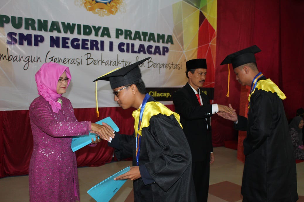 CILACAP-Senin, 28 Mei 2018 SMPN 1 Cilacap mengadakan kegiatan PURNA WIDYA PRATAMA angkatan 71. Acara ini sekaligus digunakan untuk pengumuman kelulusan. Kegiatan ini diselenggarakan oleh Wali murid kelas 9 SMPN 1 Cilacap. Dan acara berjalan dengan sangat lancar.