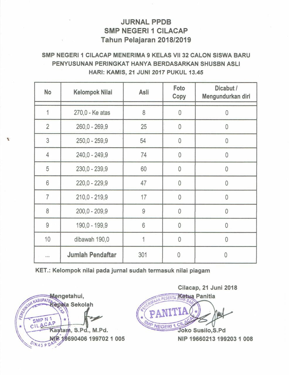 JURNAL PPDB SMPN 1 CILACAP 2018 Kamis 21 Juni 2018