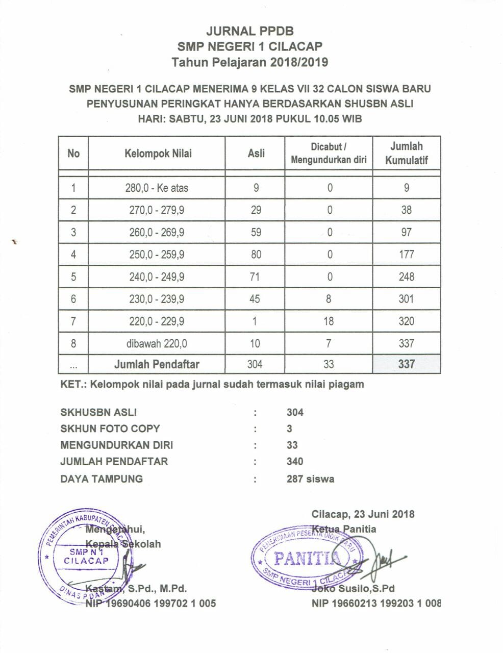 JURNAL PPDB SMPN 1 CILACAP 2018 SABTU 23 Juni 2018 dipublikasikan oleh IT Spensa | 23 Juni 2018 0 Komentar Semoga Sukses