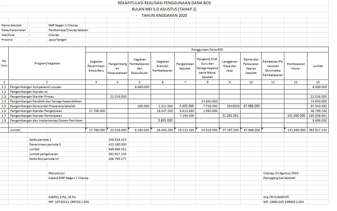 Laporan Bos Bulan Mei- Juni-Juli Agustus 2020 dipublikasikan oleh IT Spensa | 30 November 2020 0 Komentar Berikut ini merupakan laporan penggunaan dana bos periode bulan Mei – Agustus tahun 2020