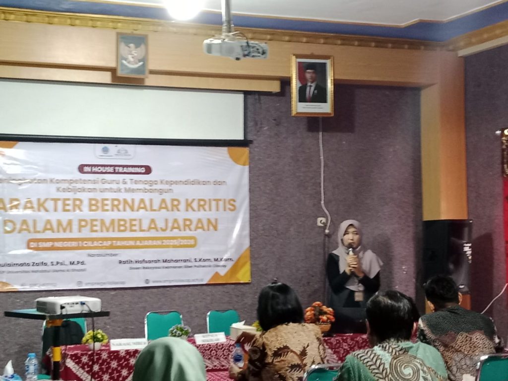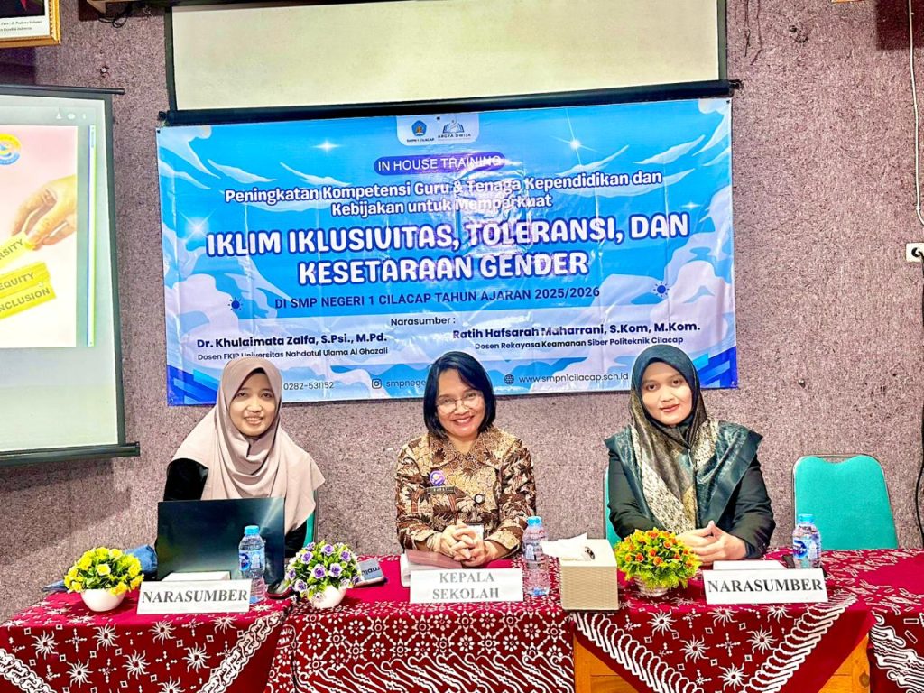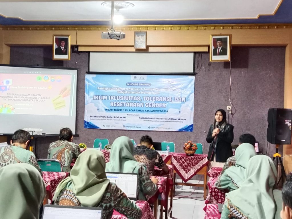 SMP Negeri 1 Cilacap menyelenggarakan kegiatan In House Training (IHT) pada Jumat, 21 November 2025, bertempat di Ruang Multimedia SMP Negeri 1 Cilacap. Pelatihan ini digelar sebagai upaya meningkatkan profesionalisme guru dan tenaga kependidikan sekaligus memperkuat pelaksanaan pembelajaran yang inklusif, berkeadilan, dan berorientasi pada pengembangan karakter siswa.